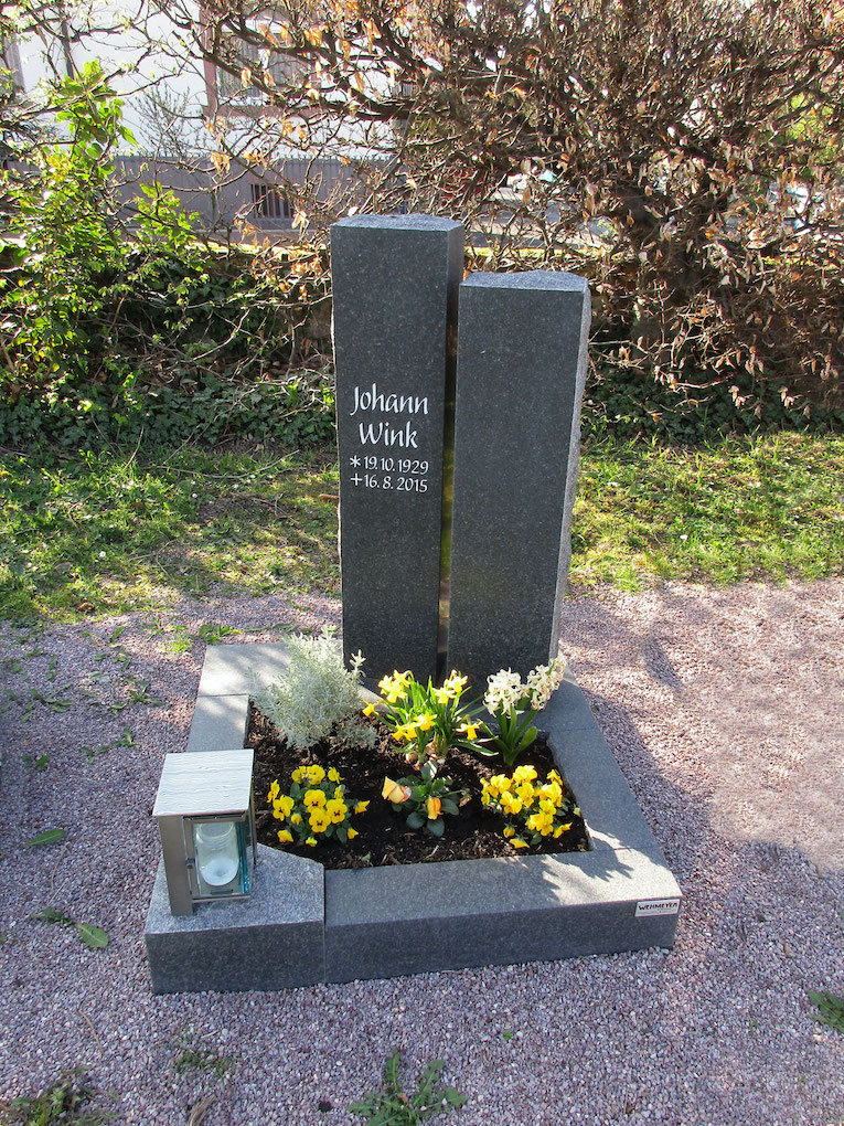 Für Einzelgräber ist der eher schlanke Reihengrabstein üblich.